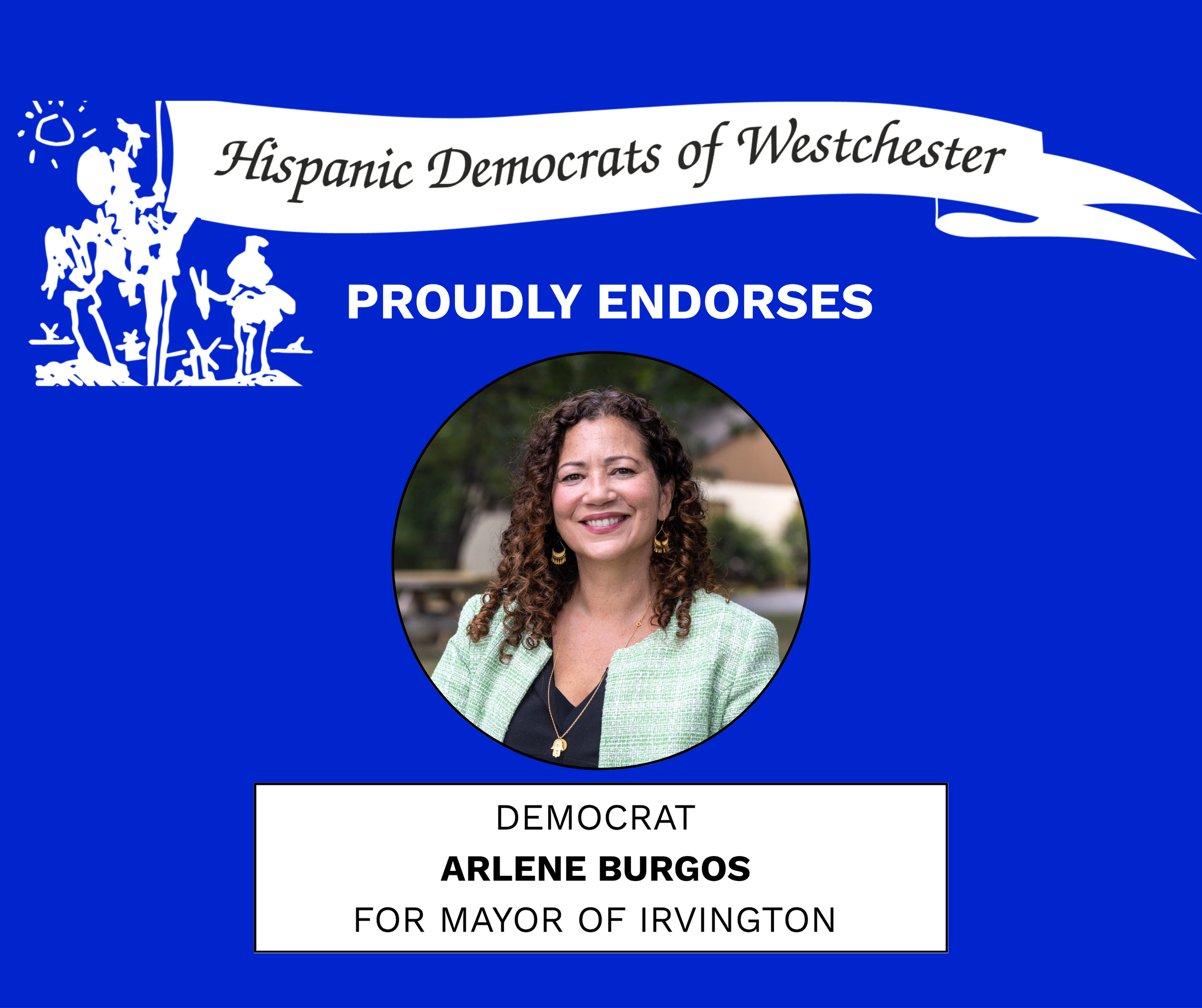 We are proud to share that the following groups have endorsed Arlene Burgos for Mayor: Westchester Jewish Democrats, Hispanic Democrats of Westchester, Eleanor’s Legacy, and Rivertowns for Reproductive Rights.